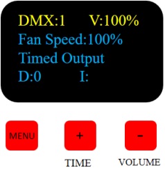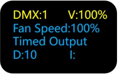 First Line: DMX address and Battery Volume, “:” blinks when there is DMX in signal.