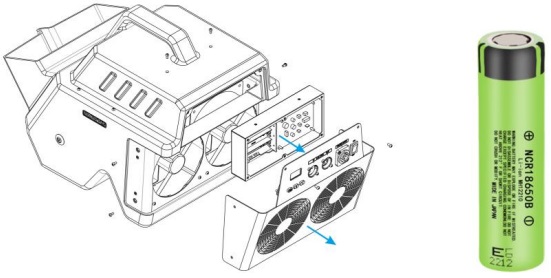 SHOWVEN bubble machine can be powered through 3 pcs of 18650 cells. New bubble machine