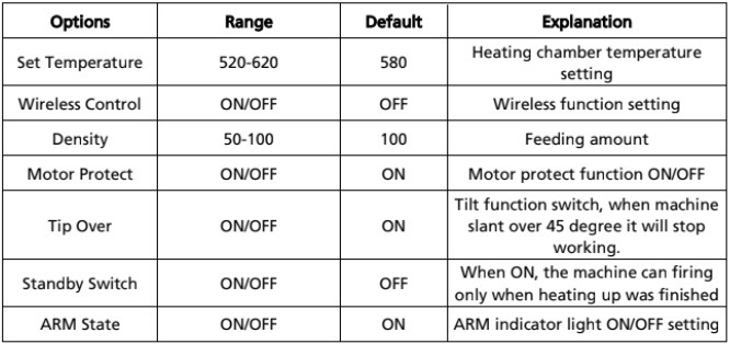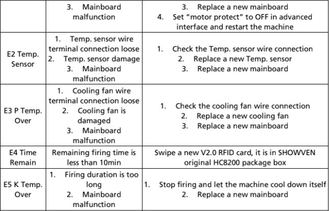 e) Firing. In order to prevent overheat in the heating chamber and protect machine, the