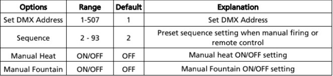 e) Assign DMX address for each unit of SPARKULAR® WHEEL. If use SHOWVEN FXcommander
