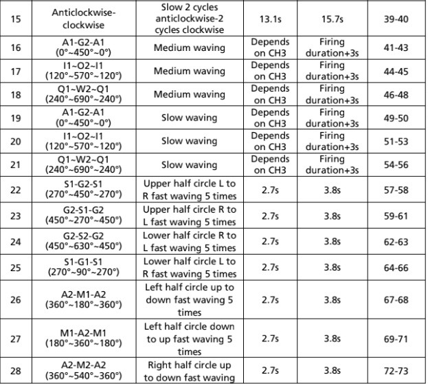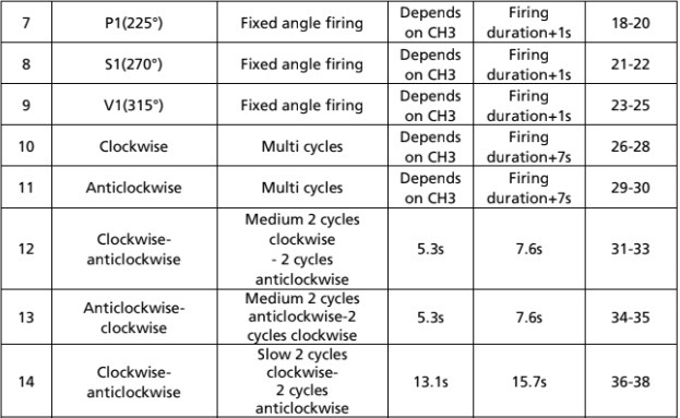 - Adjustable rotation speed, direction, and angle for customized effects, including rotating, waving, or fixed-direction firing.