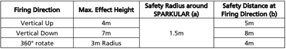 \ Make sure no staff, audience and flammable materials stays under the SPARKULAR® WHEEL.