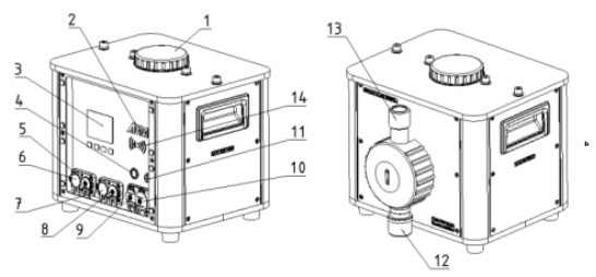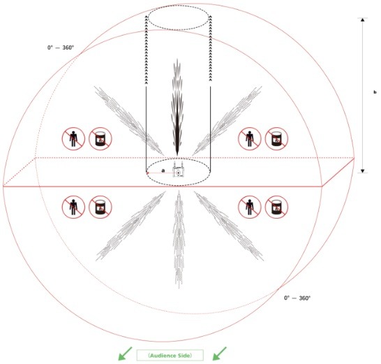 (a) and safety distance at firing direction (b). No person and flammable materials are allowed