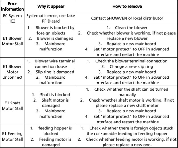 b) Empty the feeding hopper if long time not use, for high humidity environment we suggest