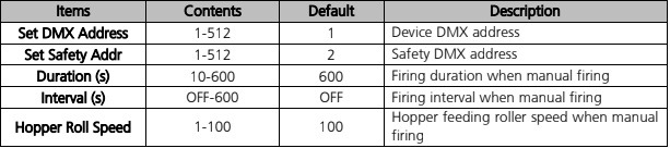d) Change the DMX value below 10 to stop firing, then deactivate the enable address of safety channel.