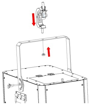 2.2.1 Install the mount bracket on top of machine as below, screw a clamp on top of the braket