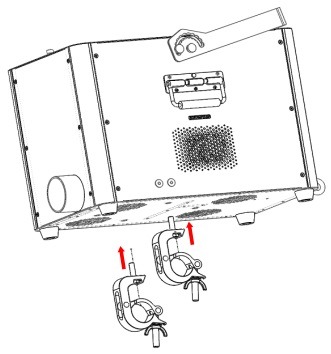 2.3.1 Screw the clamps to the threaded M10 holes on the bottom of machine.