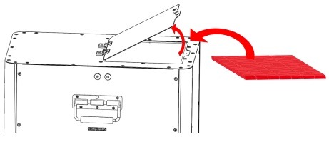 WARNING: Make sure there are no objects that can be damaged by the machine within the output