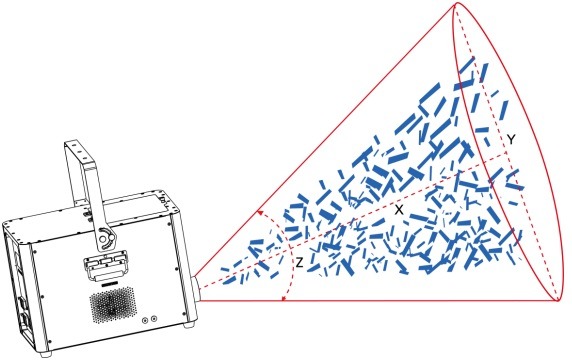 The output height, width and distance depend on the type of confetti, the output angle, the operation