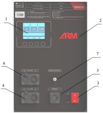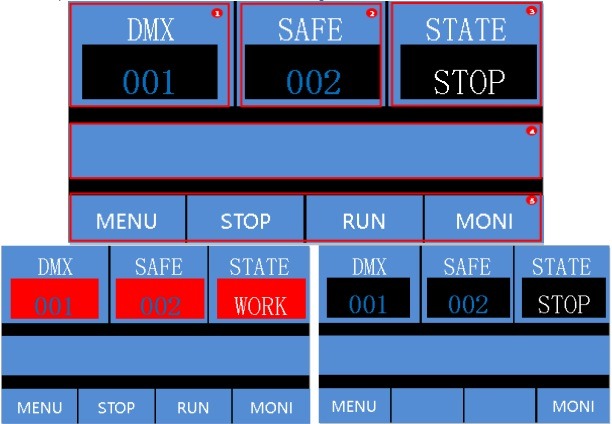 To blow uFetti Blower manually please disconnect DMX connection, press “RUN” button on LCD
